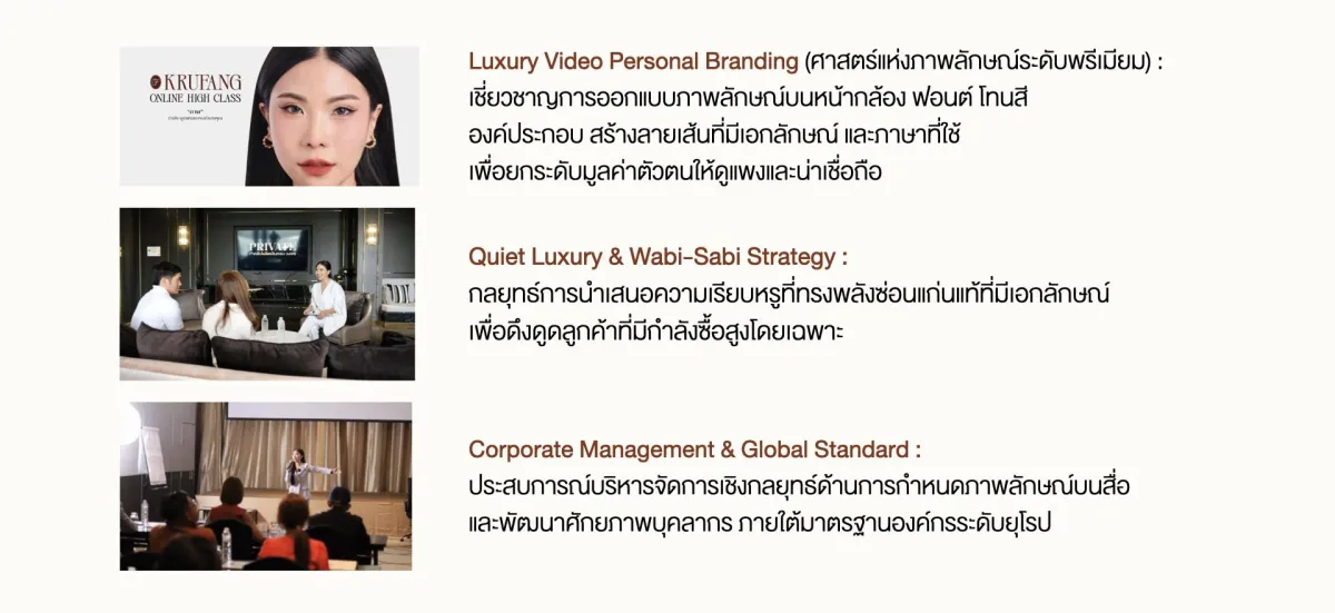 ซึ่งมุ่งสอนการสร้างภาพลักษณ์ และ Video Personal Branding